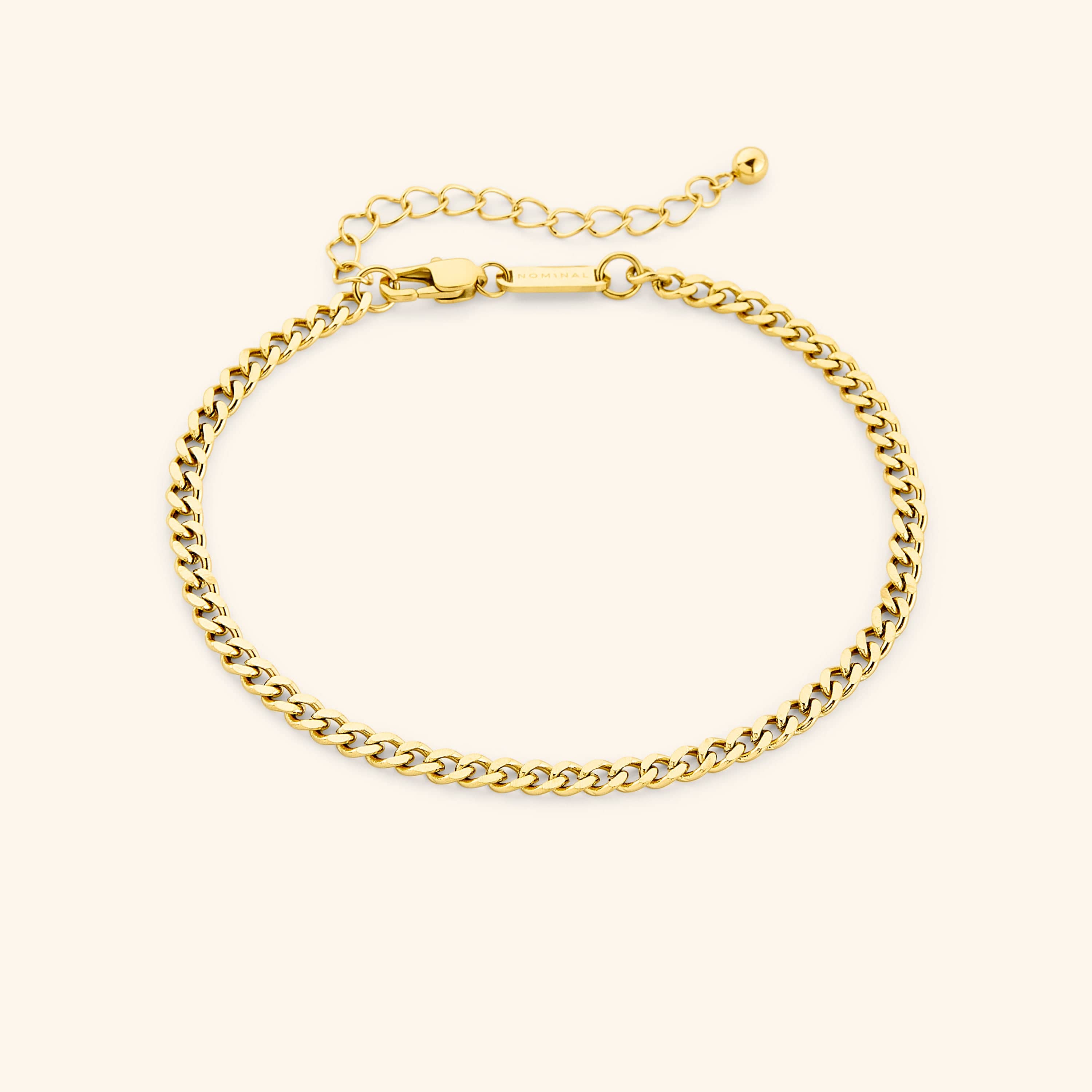 The Curb Chain features flat uniform links that make it our cleanest and simplest chain style yet. As an anklet, this piece knows how to subtly add a dash of gold to any of your favorite outfits.