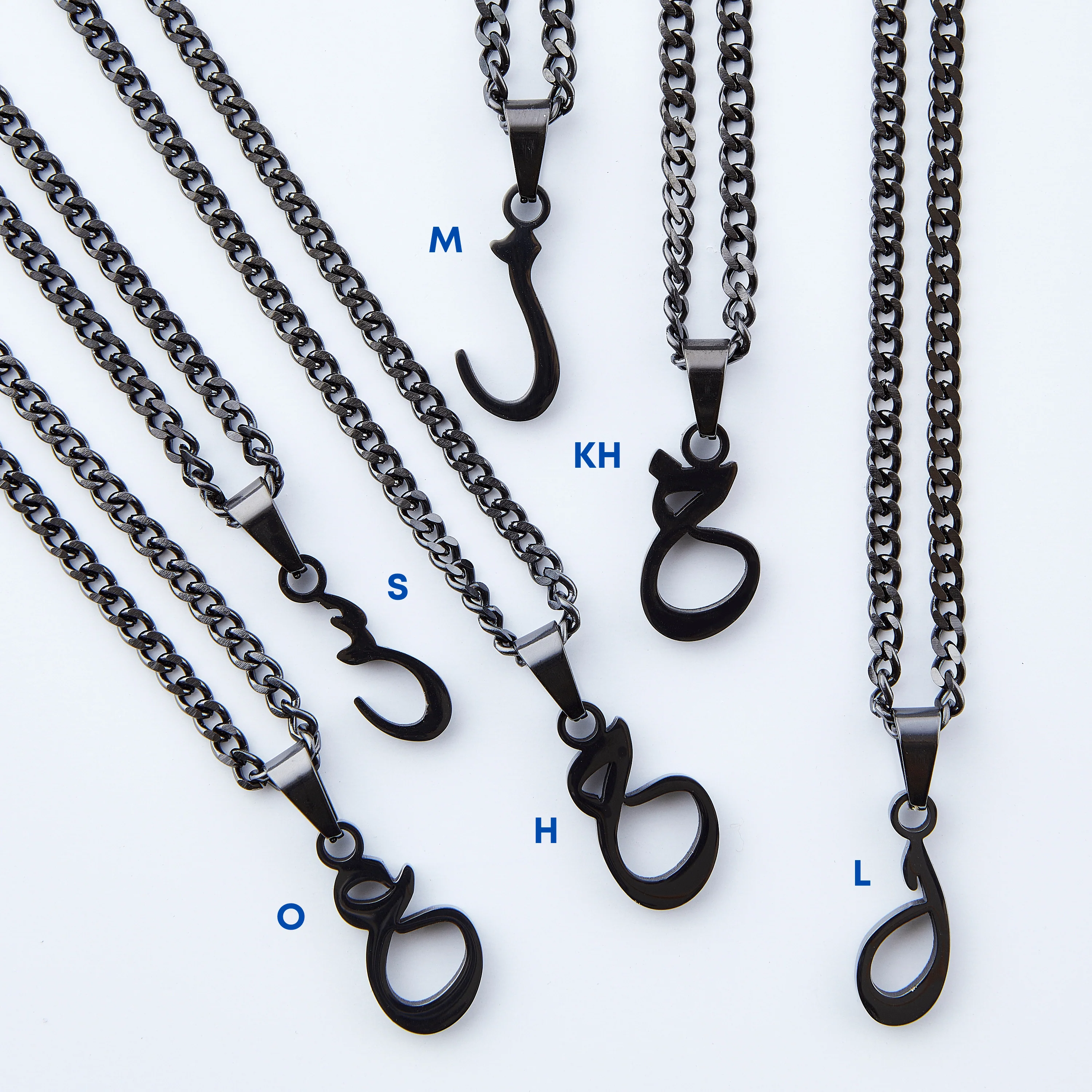 The iconic Arabic Letter has helmed Nominal for half a decade. This all new variation delivers a timeless way to represent yourself or a loved one. Your identity in one hanging letter, brought together by an elegant curb chain, meant for meaningful everyday wear.