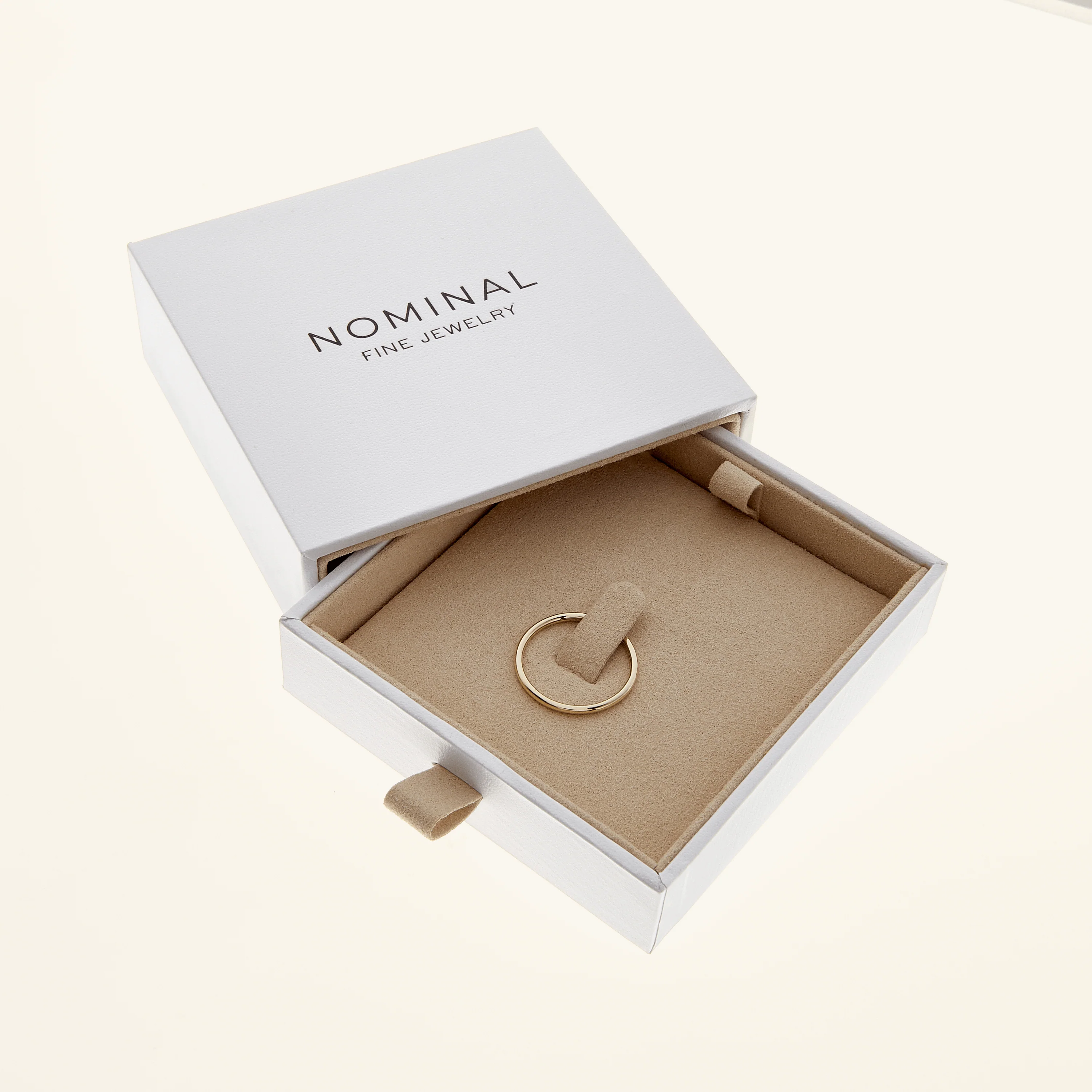 The Thin Band is a perfect ring both for stacking and for standing solo. Minimal in nature, this ring is meant to never come off, no matter what outfit or occasion. With a smooth finish, inside and out, this piece is for forever, both in quality and simplicity.
